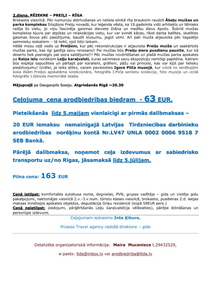 AICINĀM VIENĀ no 4 EKSKURSIJĀM